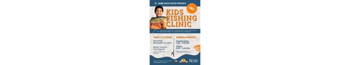 St Johns River Center Presents: Free Kids Fishing Clinic Join us for fishing a learning clinic led by Donna Frantz with Fishing Party 101. Gear and Bait will be provided Ages: 6 - 12 Years