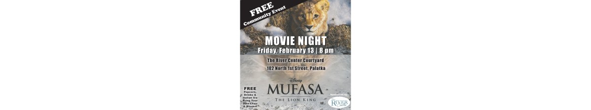 Bring the family and enjoy a FREE outdoor movie night at the River Center Courtyard featuring Mufasa: The Lion King! Grab your chairs and blankets, settle in under the stars, and enjoy complimentary popcorn, drinks, and Italian ice while you watch the river come alive at night.
