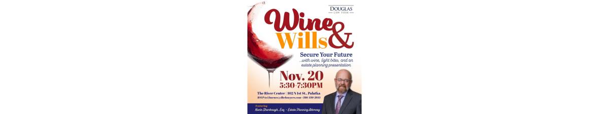 Wine & Wills Brought to you by Douglas Law Firm Secure your future with wine, light bites, and an estate planning presentation.